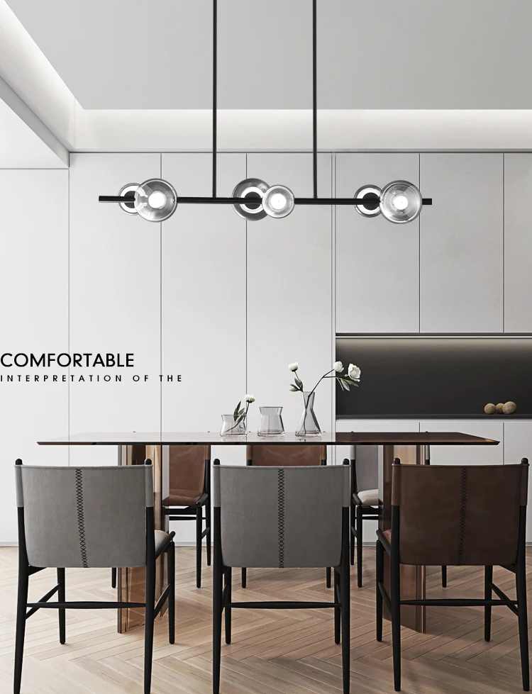 The Algenib Pendant Lamps are a minimalist and creative lighting solution, perfect for adding a modern touch to restaurants, bars, or dining spaces. These pendant lamps feature a sleek design with frosted glass shades and a choice of black or copper finishes, making them a stylish addition to any interior.
