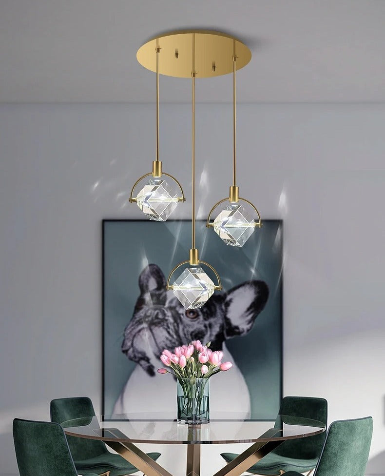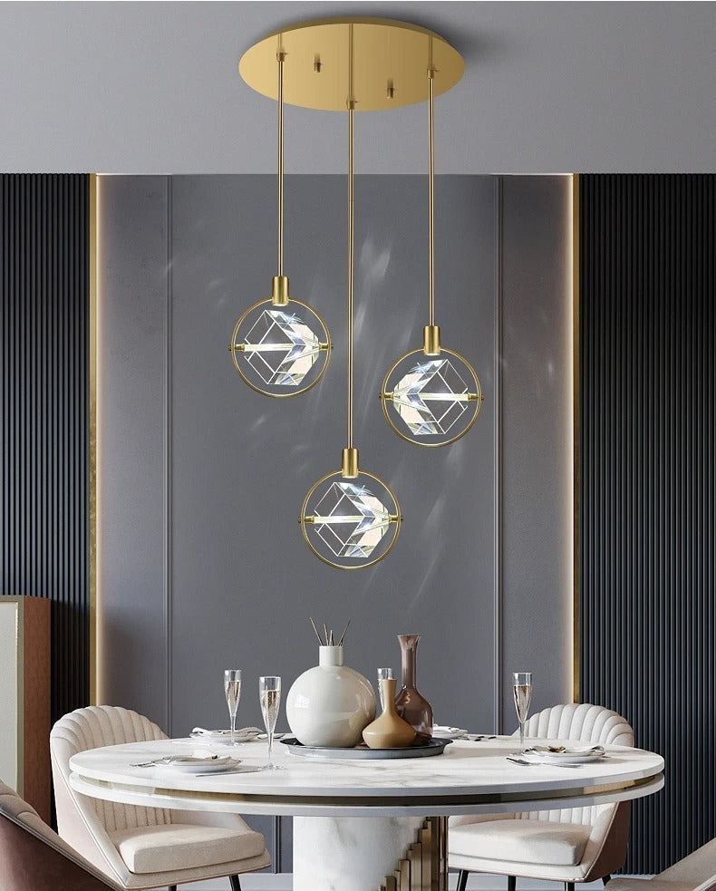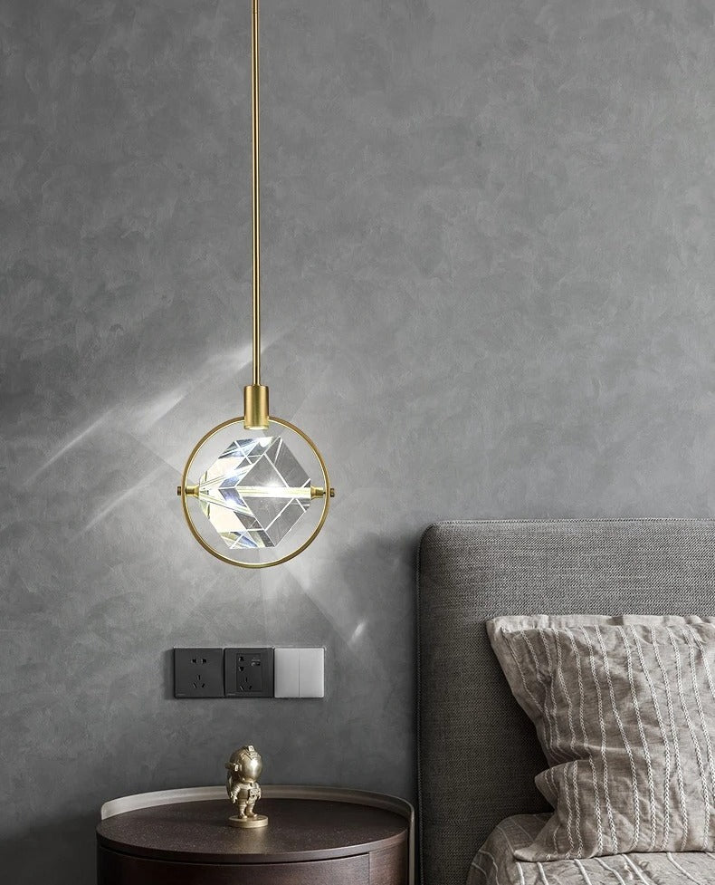 The Ancha Pendant Lamp is designed for elegant living spaces. It features a clear crystal lens and a sleek, modern design. This lamp is perfect for adding a touch of luxury to any room. The Ancha Pendant Lamp is a high-quality wrought iron lamp body that is reliable and durable. The lamp has a long-lasting life and can serve you for many years. Update your home decoration with this amazing Ancha Pendant Lamp!