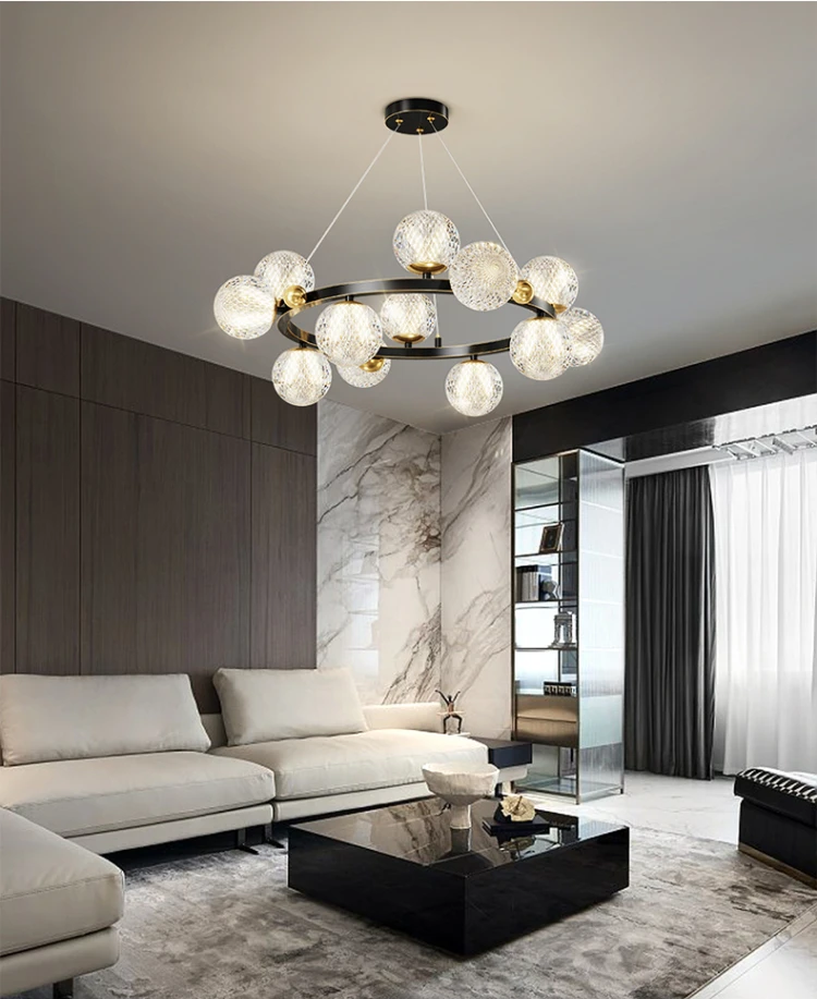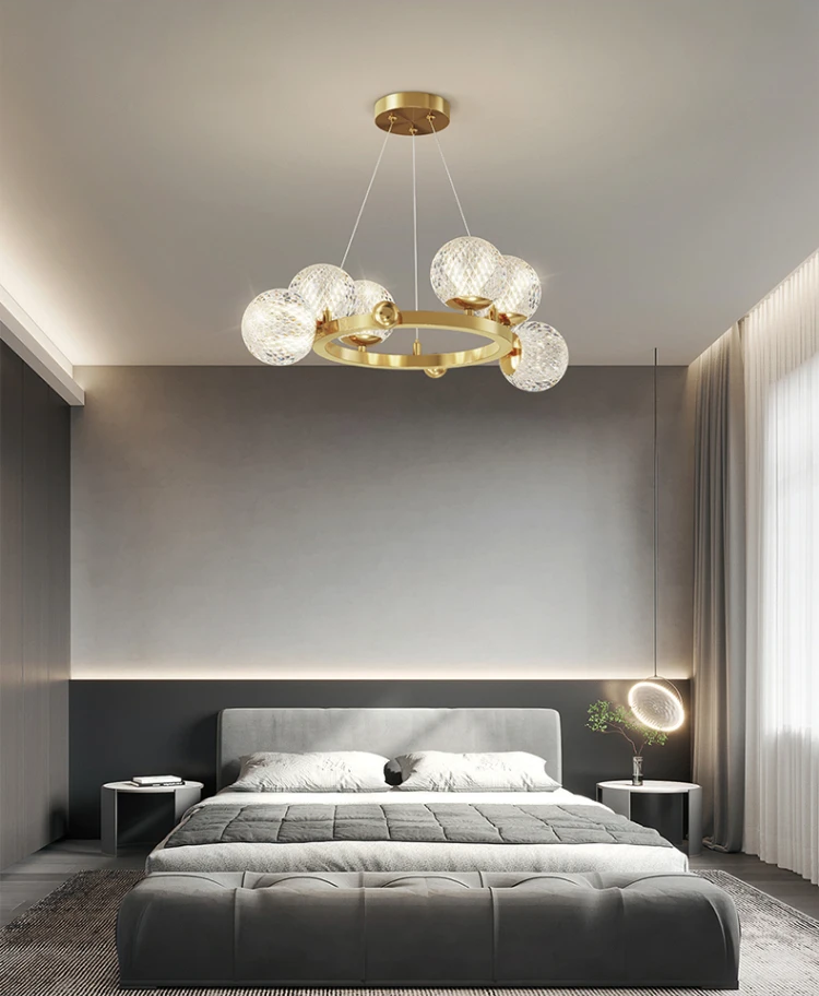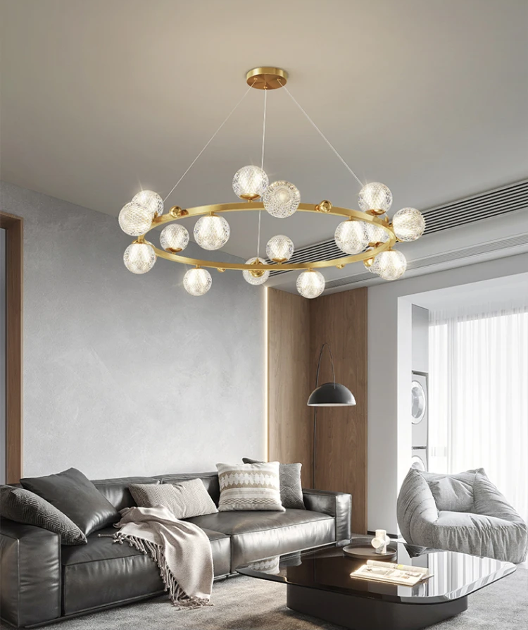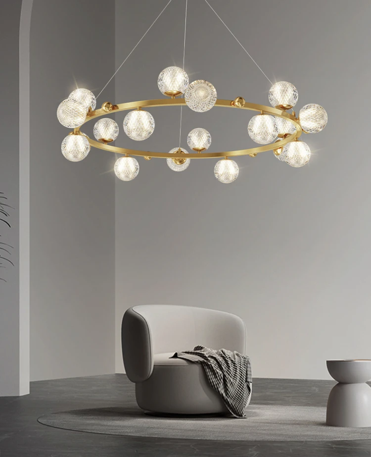 The Celaeno Chandelier is a luxury lighting fixture designed to bring modern elegance to any space. Crafted from high-quality copper and acrylic, this chandelier features a sleek geometric design, making it a standout piece in living rooms, dining rooms, and bedrooms. Available in various sizes, it offers versatile options to suit different spaces.