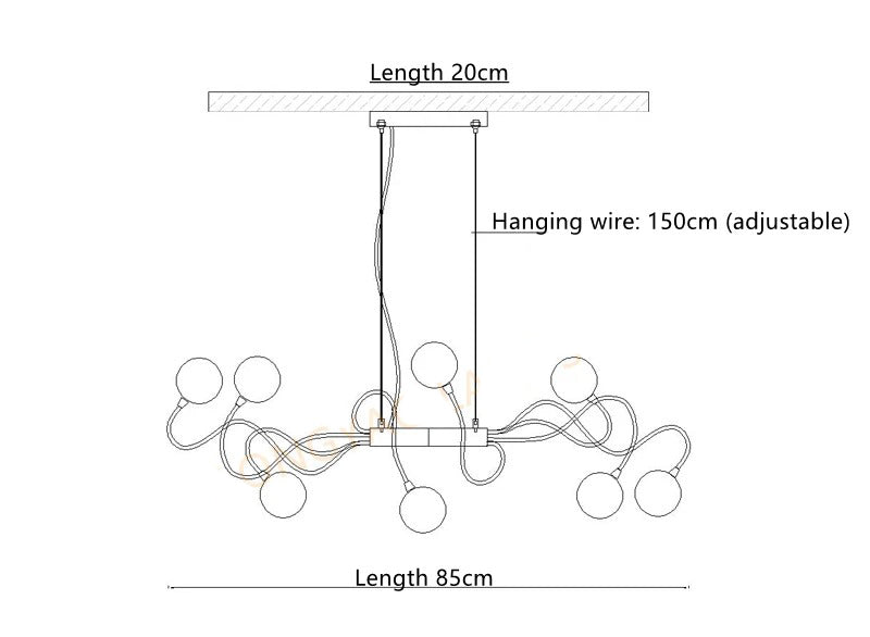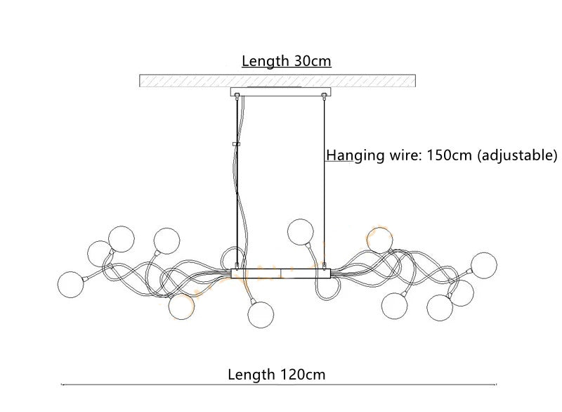 Many fixtures with hanging wires allow for customization. If you need a specific length, please specify it in the customization section. The length provided will be the maximum length, and you can adjust it upon receipt. It is easier to shorten the wire than to lengthen it. We recommend measuring your space before placing an order. You can also upload explanation files in the product page's designated section.