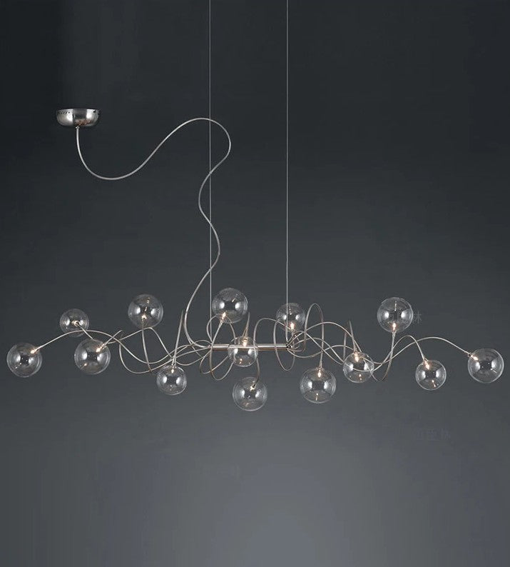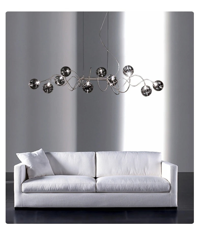 This Chertan Ball Chandelier is made of stainless steel metal and glass and comes with adjustable arms and swivel directions to ensure the perfect arrangement. The smooth glass surface gently responds to your mood and adds a touch of whimsy to any space. With an instant dimming function, this chandelier can also be used as a backup lighting source for other furniture or decorations. So if you're looking for a stylish and ambiance-making addition to your home, the Chertan Ball Chandelier is a perfect choice.