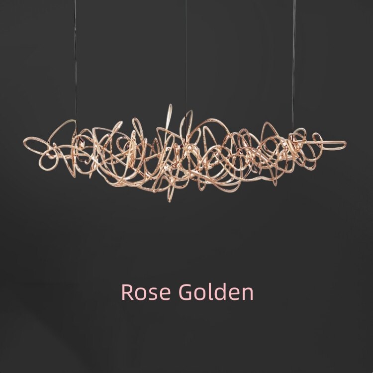 The Circini Curve Chandelier is a modern and artistic lighting fixture, perfect for adding a touch of elegance and novelty to any dining room, kitchen island, or bar. Made from polished stainless steel, this chandelier features a striking curved design and is available in three luxurious finishes: titanium golden, chrome, and rose golden.