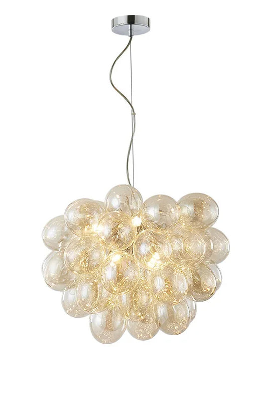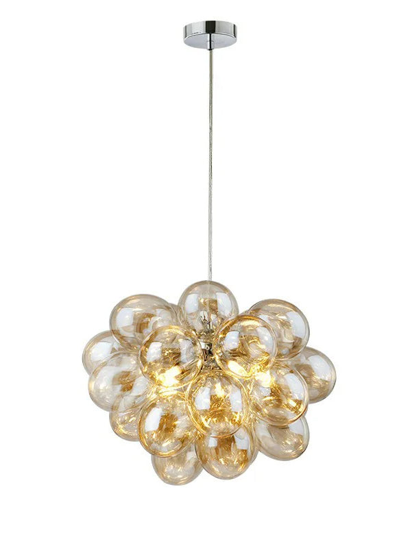 This Lesath Bubble Chandelier is the perfect addition to your home's art deco design! The Lesath Bubble Chandelier is a contemporary design that can be made into a light fixture in your home's interior or placed outside to light up your yard or patio. The pendant light is also made of high-quality brass and glass, making it durable and eye-catching.