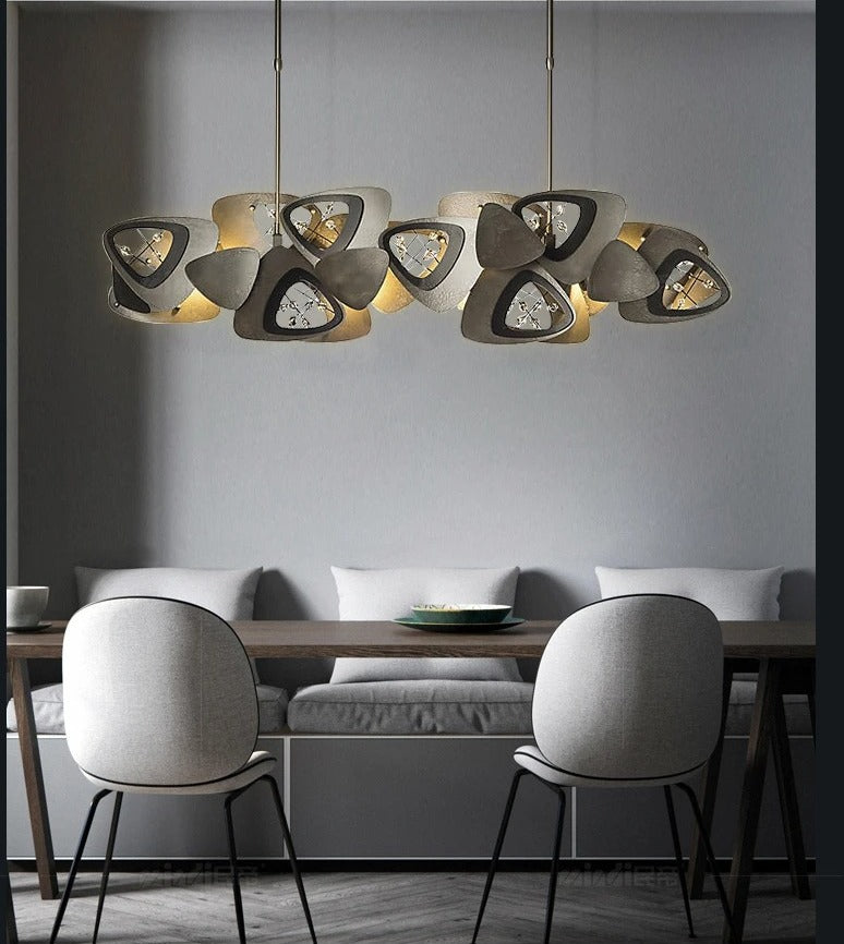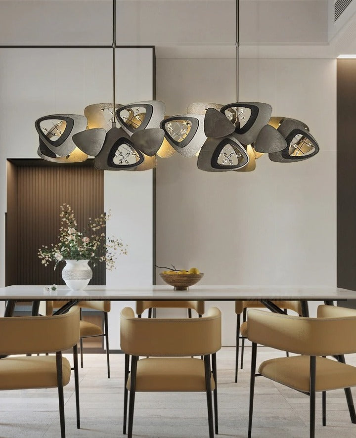 Introducing the Nunki Art Chandelier! This beautiful and technological chandelier is perfect for a modern living room or bedroom. It can be adjusted as desired to different ceiling heights and comes with a unique design that will make you feel like you're flying in a dream. The ceiling canopy is also ideal for flat and sloped ceilings, so you can get a perfect circle of light without worrying about eye damage. Whether you're using them as a home decoration or as part of a formal dining room set, these chandeliers will add an extra level of sophistication and beauty to any setting.