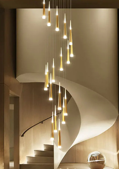 Whether your home is filled with natural light or Darkness, the Pegasi Rain Staircase Chandelier will add a touch of luxury and style. With its unique design, it's easy to match any decor, while adding functionality that's perfect for stairs or any other area in your home.