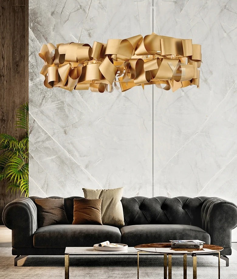 Bring your living space to life with a revitalizing infusion of energy from the Piscium Irregular Iron Chandelier. Add a touch of whimsy to any room with this charming design. The iron chandelier will add personality and pizzazz to any space with its rustic look and whispered tones. Not only does it add a modern touch, but its beautiful steel ribbon also gives it a variety of looks and effects. The light flows gently across the overlapping bands, creating an attractive and inviting atmosphere.