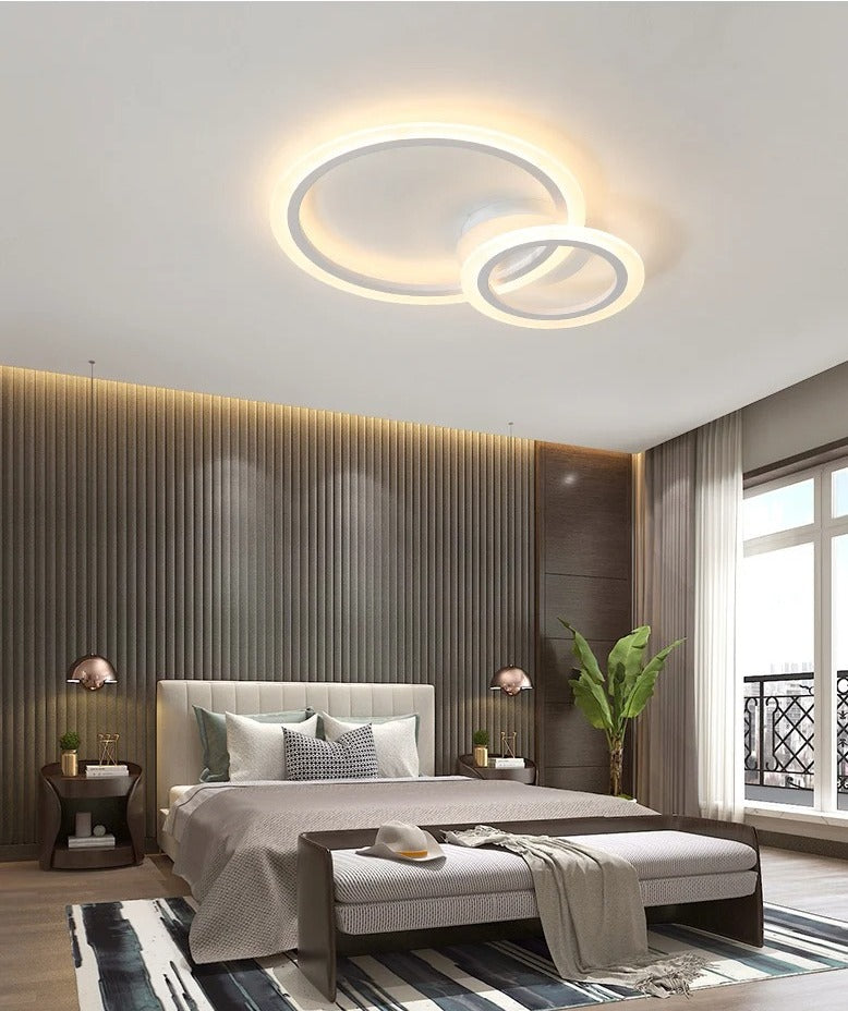 Regor Ceiling Lights are a simple, modern way to update your living room with fixtures that are both stylish and functional. They feature a round ring design and are controlled by a remote, making them easy to set up and use. The Regor Ceiling Lights give the illusion of a natural plant of 6 circles placed on your ceiling, just like a flower. Whether you're looking for an intimate living space or a functional home office, these fixtures will add beauty and personality to your spaces.