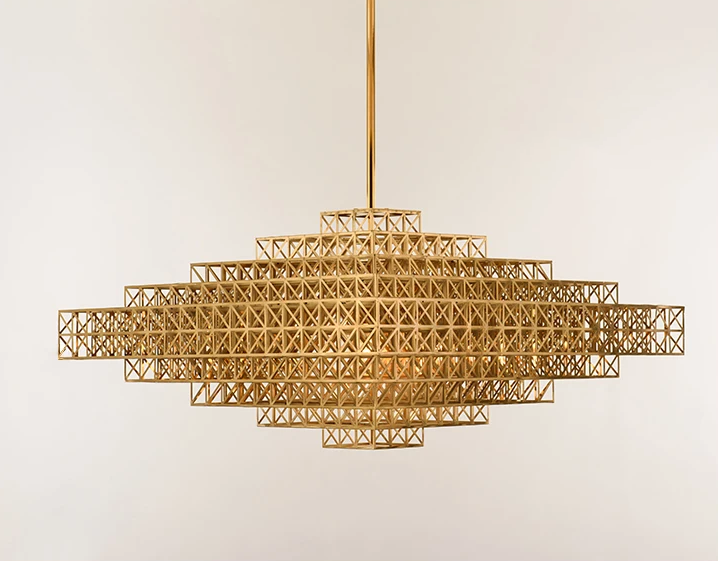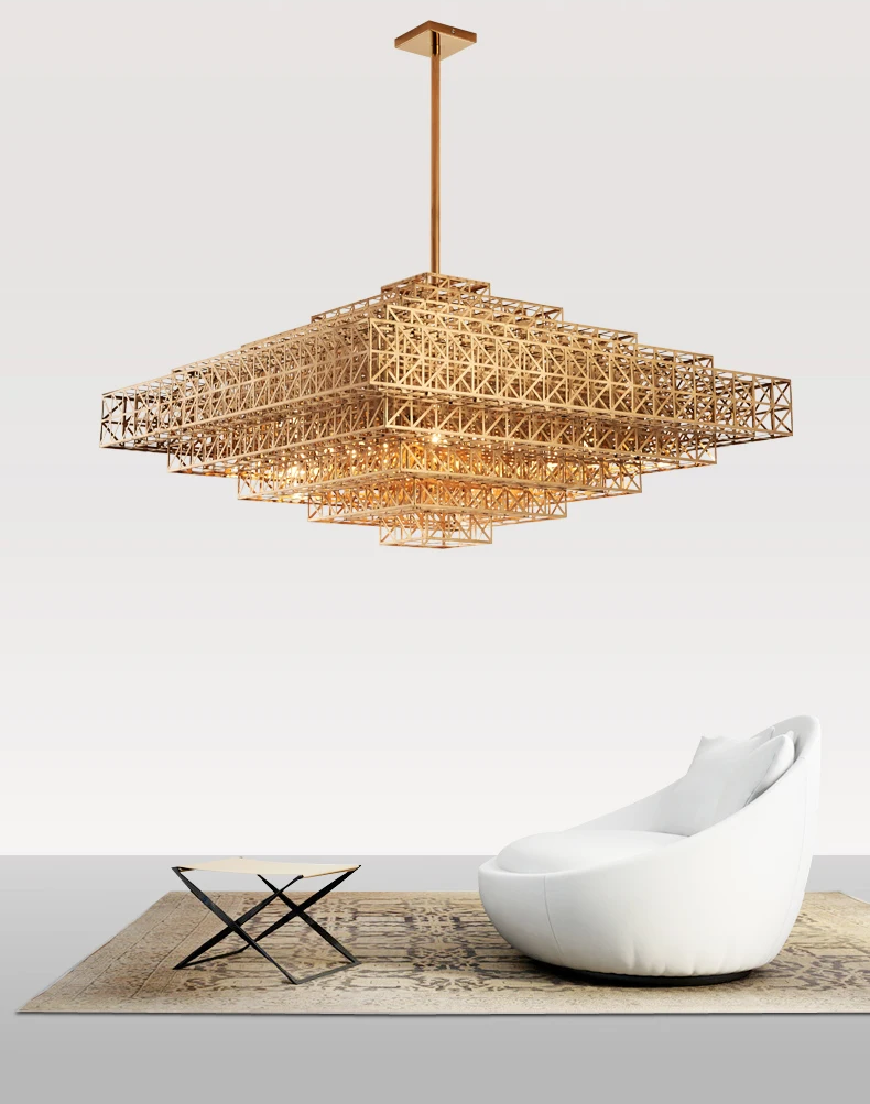 The Saiph Chandelier is a postmodern luxury lighting fixture that brings a touch of elegance and creativity to any space. Crafted from polished stainless steel, this chandelier features a unique design inspired by the modern cityscape, making it a perfect choice for living rooms, hotel halls, and parlors.